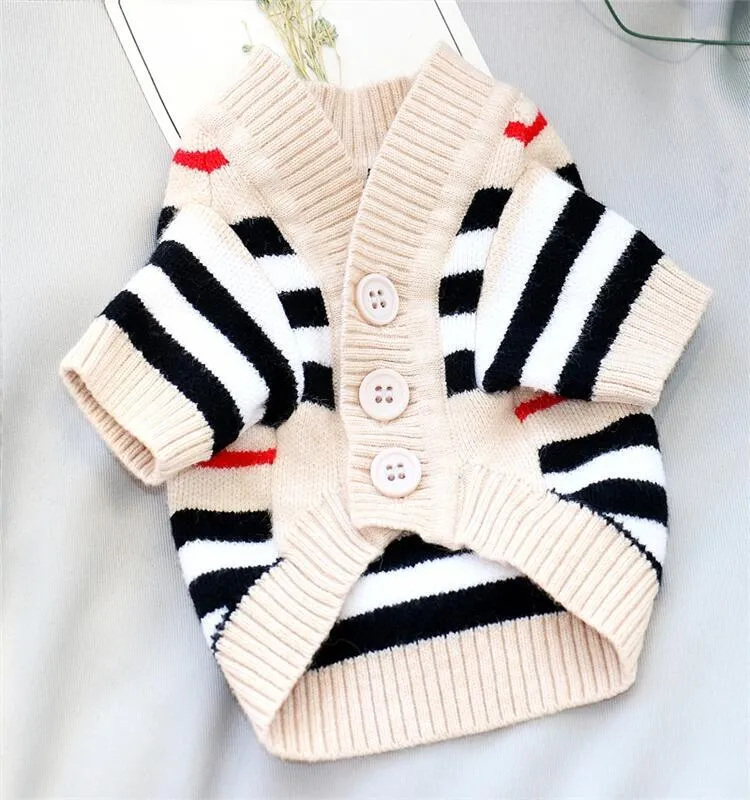 Maglione per animali domestici Maglione lavorato a maglia jacquard basso da esterno, vesti il tuo cane con un maglione da esterno adatto che fa risaltare la carineria dell'animale domestico e avvicina le persone. I maglioni per animali domestici a righe jacquard possono essere personalizzati in rosa, verde, giallo, grigio e altri colori. Possiamo riprogettare i maglioni per adattarli al tuo animale domestico.